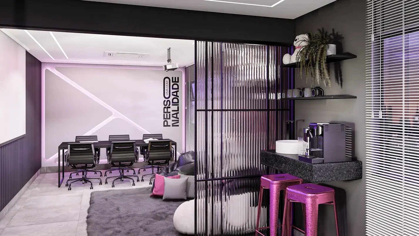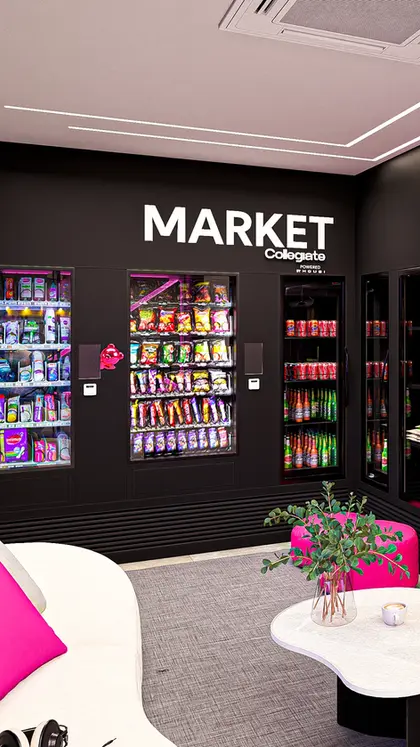 A cobertura é o local em que se encontram as áreas compartilhadas: Coworking, Academia, Rooftop, Housi Café, Housi Market e Vending Machines.